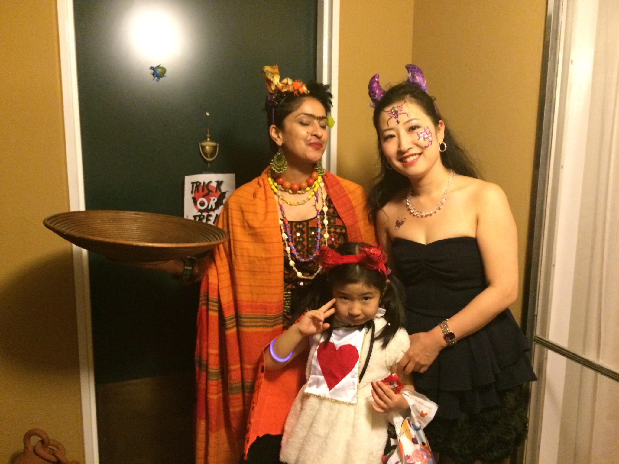お菓子につられてか何だかわかりませんが、物怖じせず、ズンズンと進んでtrick or treatと言えてるし、thank you! Happy Halloween! と英語でご挨拶。英語のスクールに通わせてた甲斐があります 泣 あー、この数言葉が口から出るまでに◯◯万円の保育料ですからねf^_^; Open the door, please! とかも言ってたし。投資のし甲斐ががありましたよ☆ 娘よ、インターナショナルに育っておくれ!