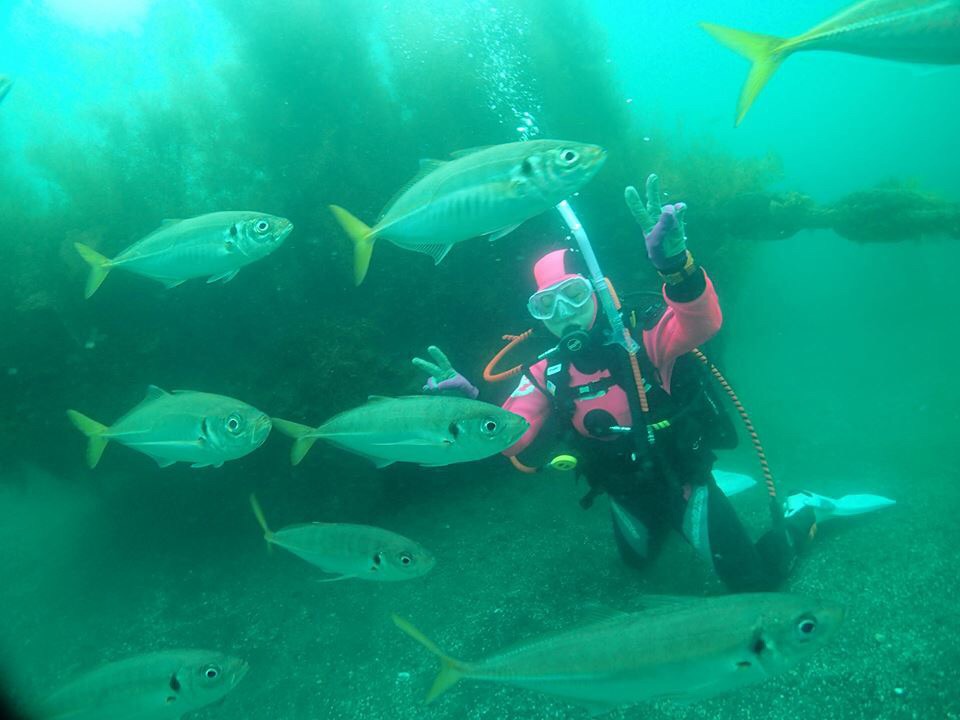 ⇧わたくしも、マーメイドになるべく、ダイビングのライセンス取得に頑張ってまーす♡美味そうなアジを目の前に。