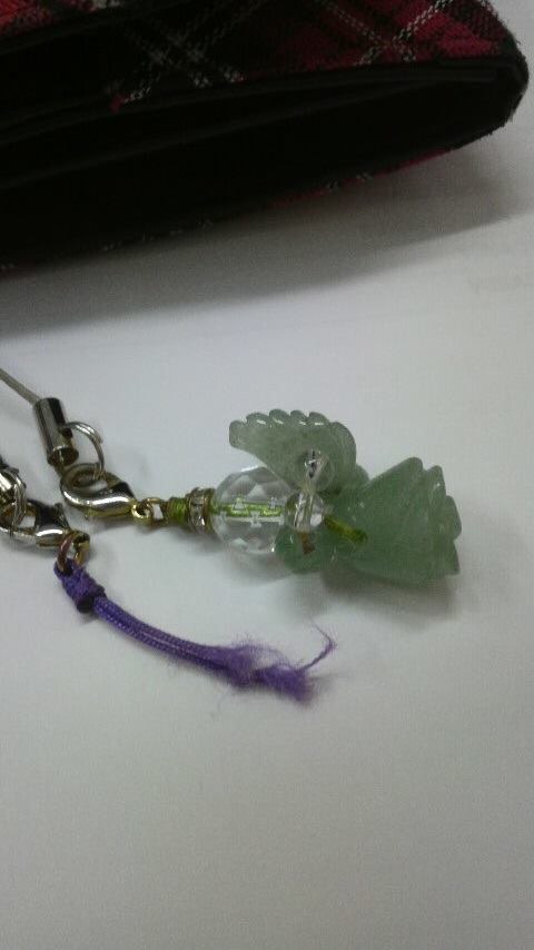その時の癒しフェアで買った緑と紫の天使のストラップを