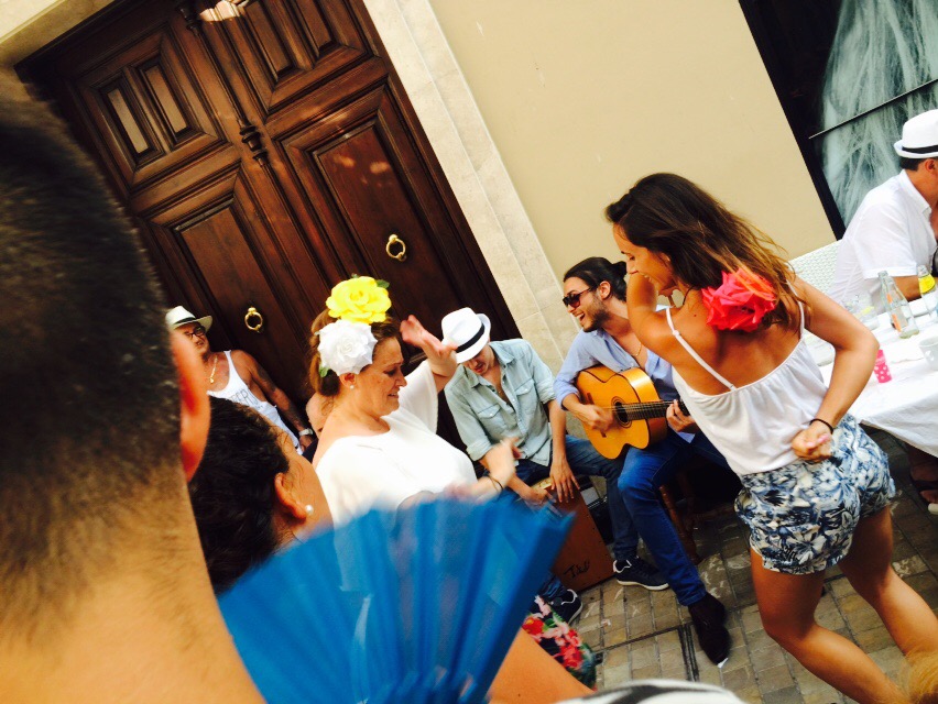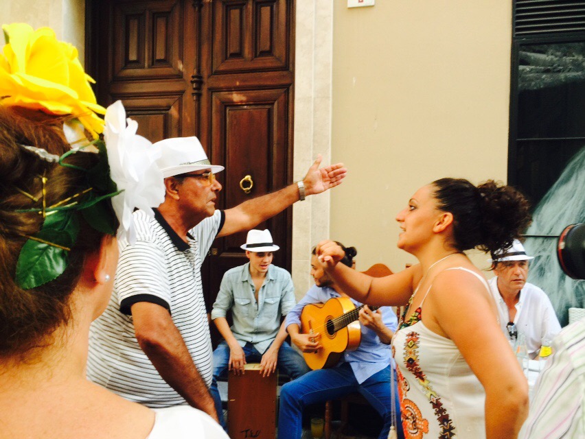 マラガはお祭りなので、街のあちらこちらで踊りが見られる。誰もが参加できるの。歳もテクニックも関係ない。