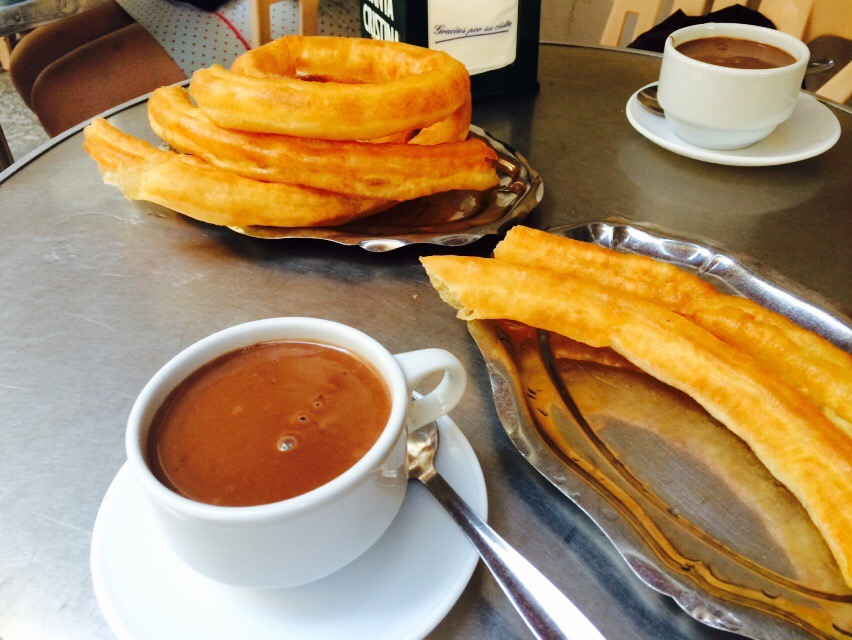本場のチュロスは全然別物だった!軽い!チョコレートソースにつけて食べます。帰る前にもう一度食べなきゃ!