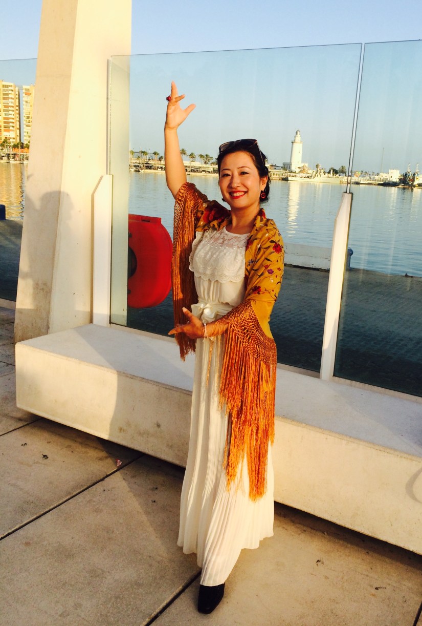 で、私も調子に乗ってフラメンコのショール買ってポーズ。