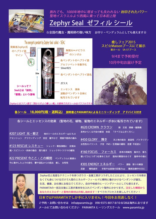 Zephyr Seal ペンダントは凄いですよ。波動の高さに声を上げる方も 笑 本気の方、ご注文お待ちしております。