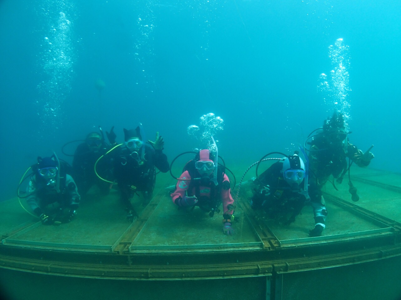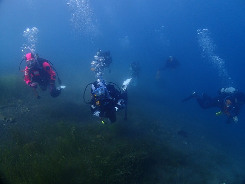 またまた底に沈んでいる何かにつかまってパチリ。海底調査の人たちってすごいね〜 よほどトレーニング受けてないとできない仕事ですね。当たり前のことだけど、死の恐怖に打ち勝つ強さが大切。海猿でも、酸素切れを想定したトレーニングで、主人公がパニックになって逃げてしまって減圧症になるシーンありましたよね。なんか、わかるわ、逃げたくなるの。