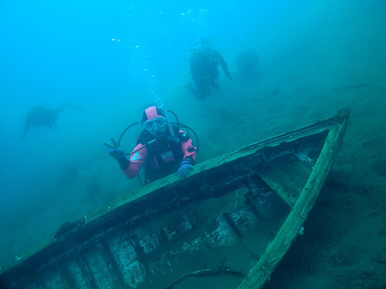 本栖湖水底にある船。淡水なので錆びずに古いものがそのまま残っているそうです。