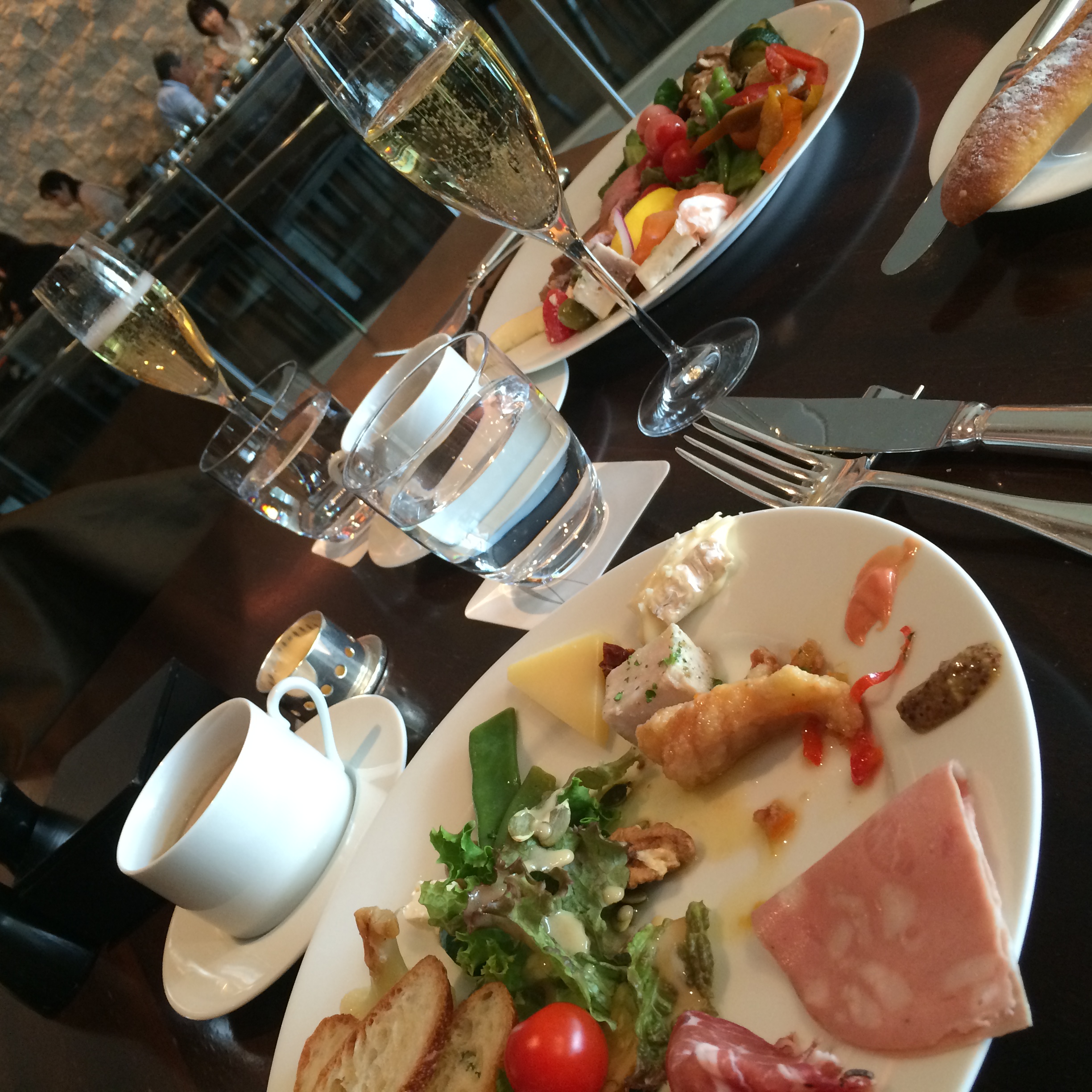 シャンパン飲んで、ランチビュッフェ。芸能人の方もいました。素のまんまでご飯できるのもこの環境だからなんでしょうね。