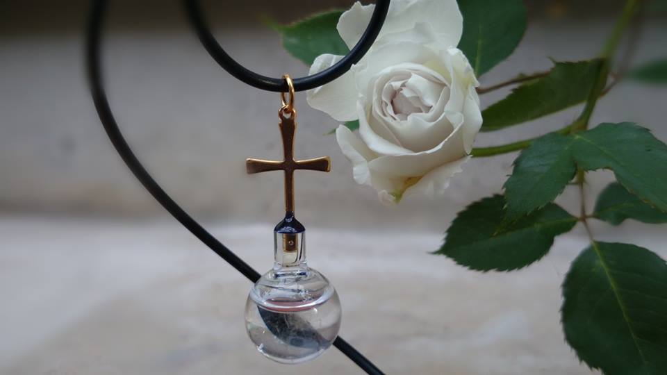 *配布されるお守りは、PARAMITAが聖地エルサレムのマリア永眠教会で出会い、製作工房から直接輸入した、24金メッキ加工のペンダントトップ。ガラス玉の中に、ヨルダン河の聖水、聖地で2000年前と同じ手作業で絞られたオリーブオイルが入っています。付属のおしゃれな金属スタンドも含め、すべてが現地の工房で一点一点手作りされています。インテリアとしても楽しめます。また、PARAMITAでは、認証印がつけられたもののみを輸入。落として壊さない限り永久に使えます。