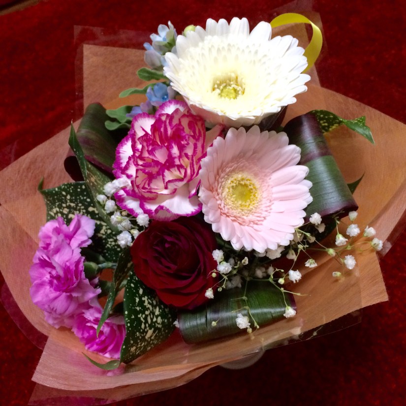 その時のお花が今でもピンピンです!祭壇の前で生き生きしてまーす