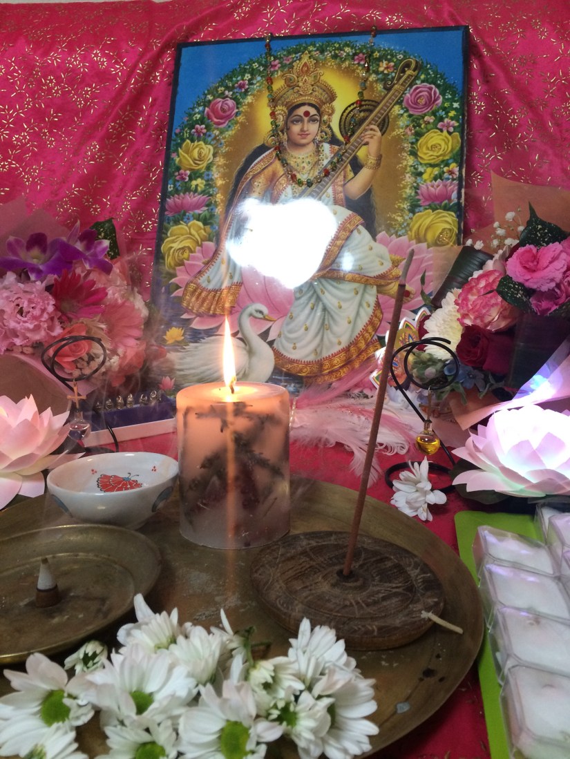 11/4に、家でサラスワティ女神へのお祈りの儀式をやります。インドにいるときから、個人的に繋がりの深い女神。ヒンズーの神様は生々しい感じのものが多い中で、サラスワティは落ち着いた、知性と美を兼ね備えた静かな強さを感じさせる女神。
