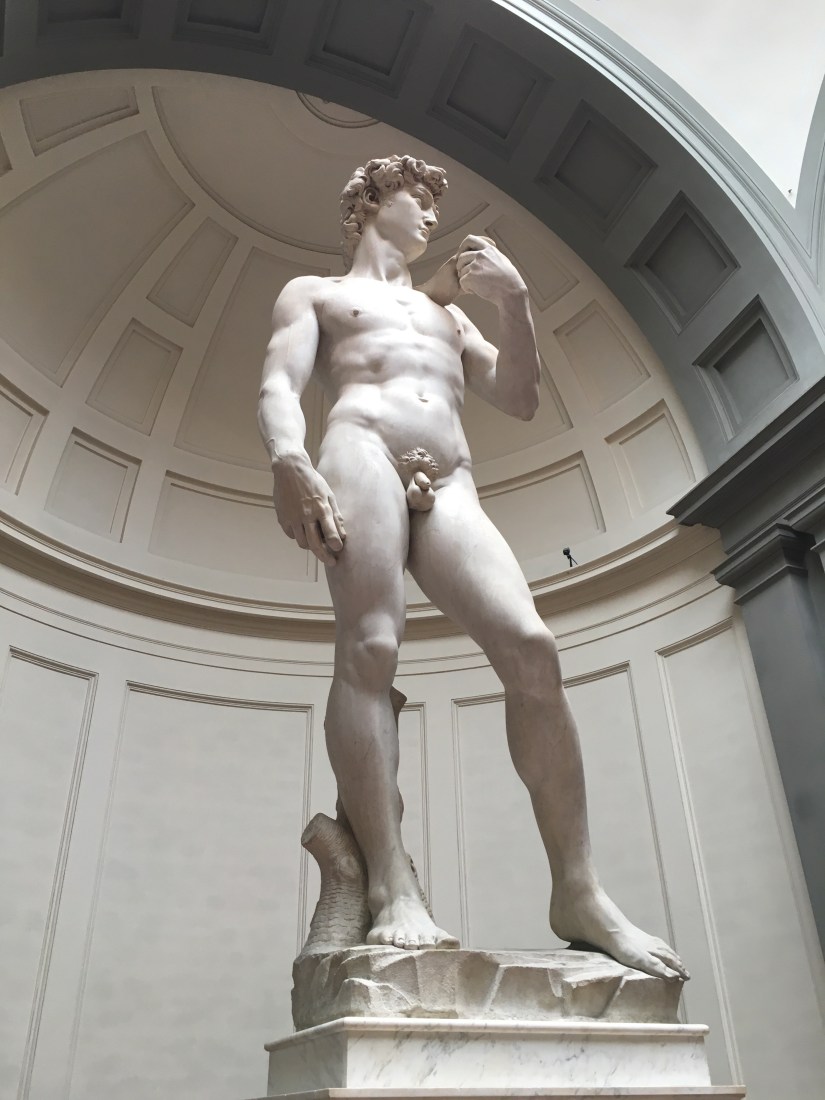 そして、今回は、卒業生の方が、「先生、アッカデミア美術館に行ってください。先生のオーラの中にあそこの楽器の部屋がみえる」と言われたので、行ってみようと考えてはいましたが、ここで出ました、ダビデ像。昨年のイスラエル旅行から、まだまだダビデ像にまつわる何かが続いているのです。
