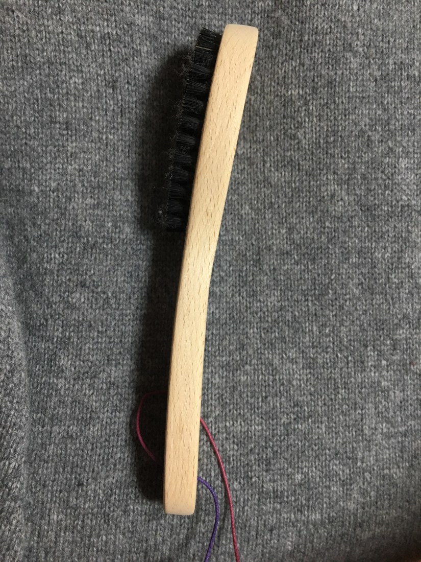 天然素材だとどうしてもできてしまう毛玉。今までは、ウイーンと音のなる電池の毛玉取りを使ってたんですけど、あれだと生地が痩せてしまうし痛むことがあるので、試しに老舗のブラシを買ってみたんです。