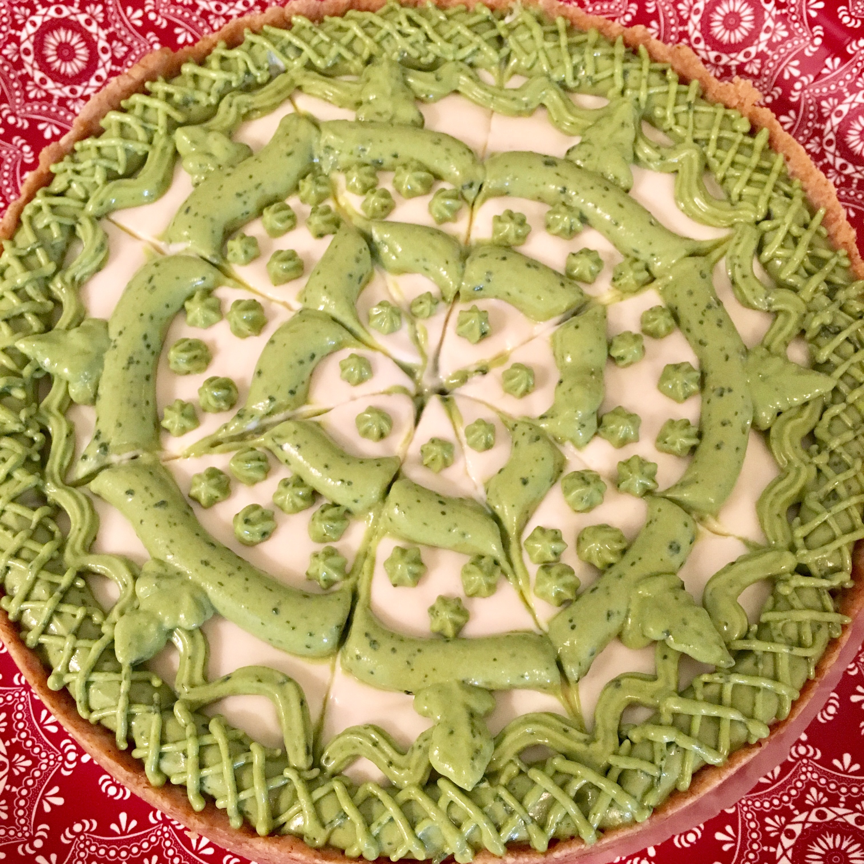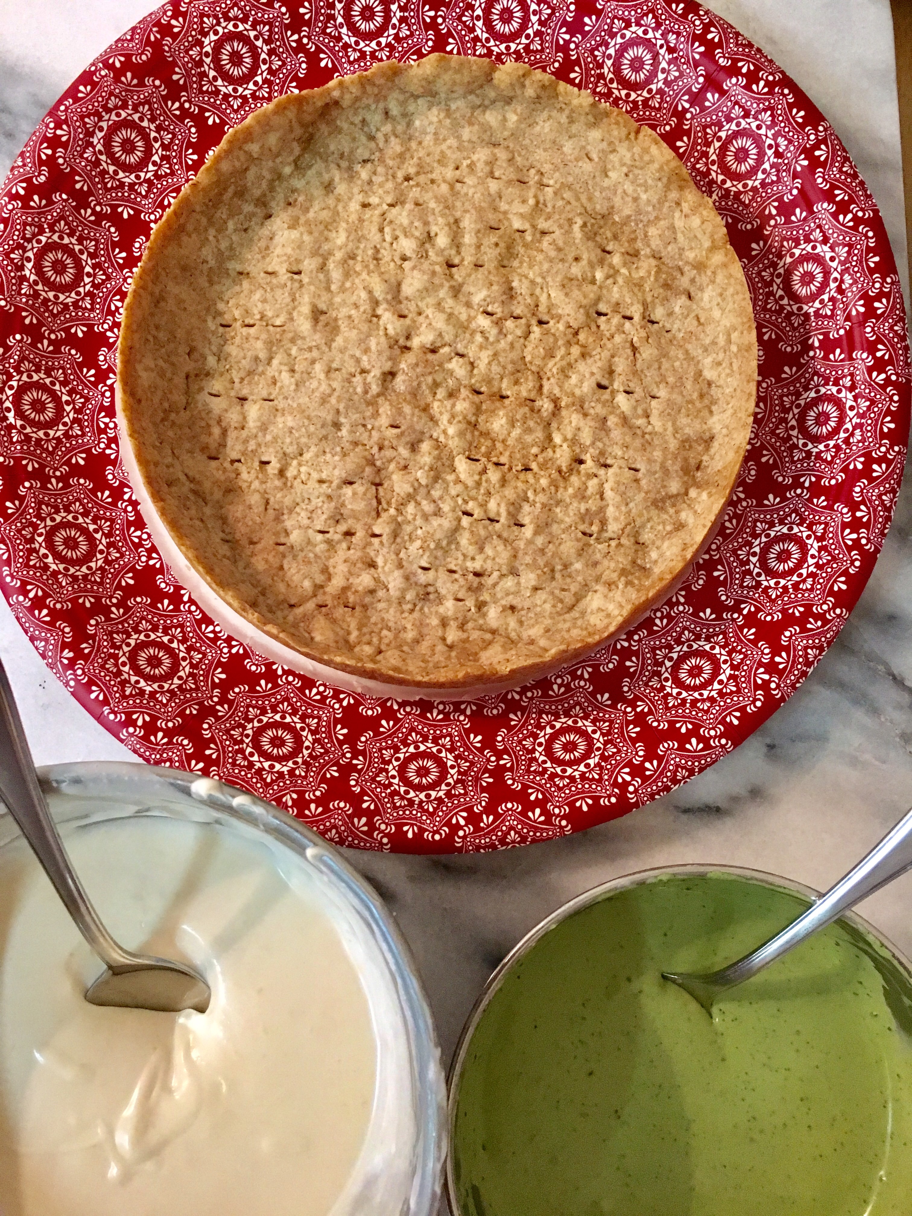 抹茶でゼブラ柄のチーズケーキを作るはずだったんだけど、温度管理とか全然できないため、別物になってしもうた。。。