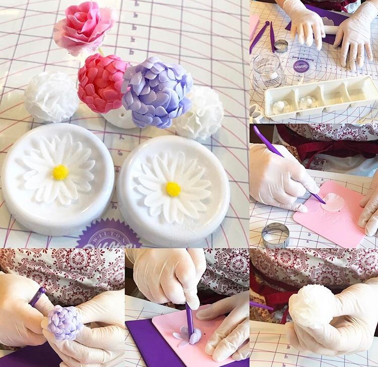 本日は、お菓子のクラスで、デイジー、カーネーション、マムなどを習いました。カーネーション、とても繊細です!マムは、自分の家で作るときはグラデーションつけたいかも。