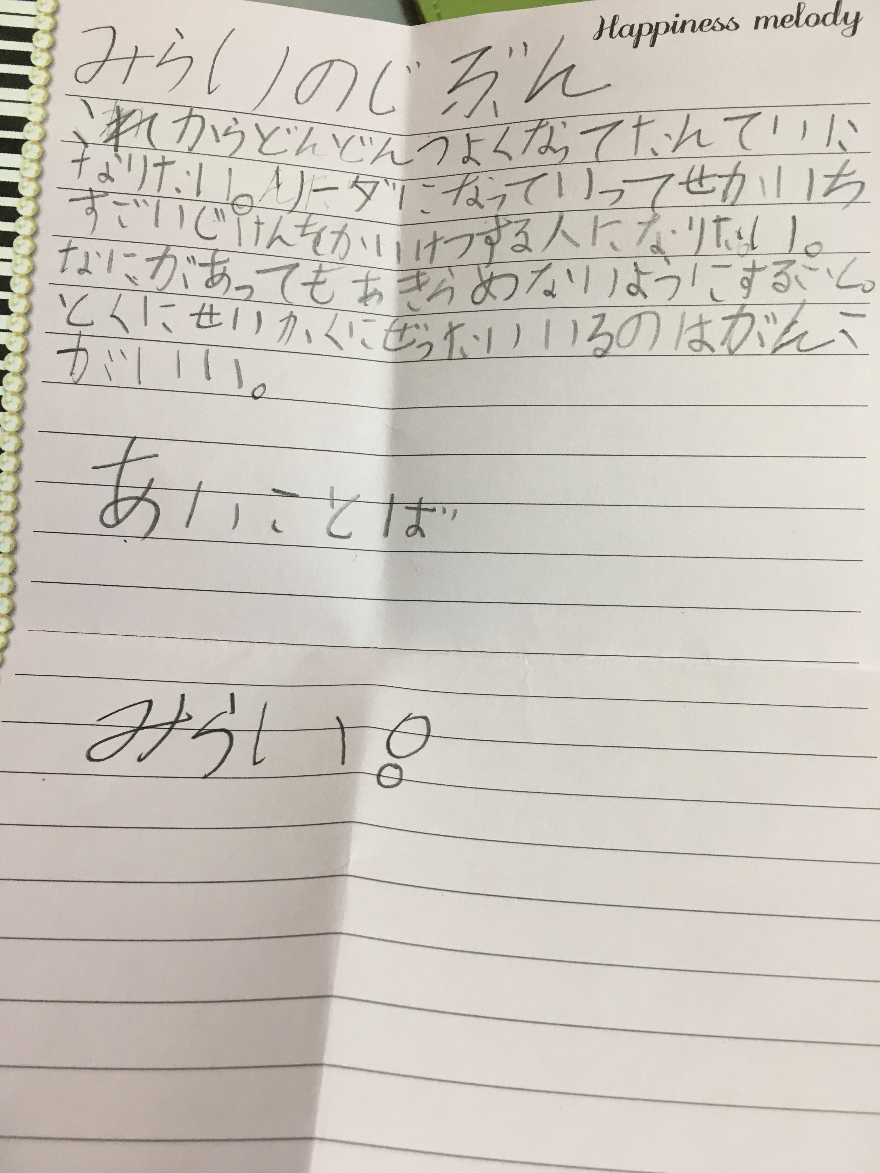 子供とエネルギー未来の自分へ 2017年2月16日 paramita369 「未来の自分へ」 これから、どんどん強くなって探偵になりたい。リーダーになって世界一すごい事件を解決する人になりたい。何があってもあきらめないようにすること。特に性格に絶対要るのは頑固がいい。 合言葉 未来! という娘がが自分にあてた手紙を見つけました。何か頑張って書いてると思ったらそういうことなのね^_^ 共有: クリックして X で共有 (新しいウィンドウで開きます) X Facebook で共有するにはクリックしてください (新しいウィンドウで開きます) Facebook いいね 読み込み中… 関連 投稿者: paramita369 President and teacher of PARAMITA Healing School 透視ヒーラー、講師 ☆個人セッションの他に、ワークショップや瞑想クラス、ヒーラー育成講座も行っています☆ paramita369 の投稿をすべて表示