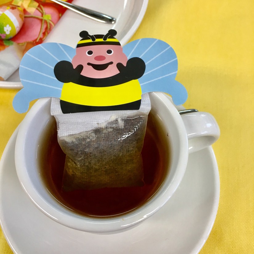 こちらは蜂がお湯に浸かってるティーバッグ。野外でピクニックやれば、甘い匂いにつられてフラフラ飛んでくることでしょう。