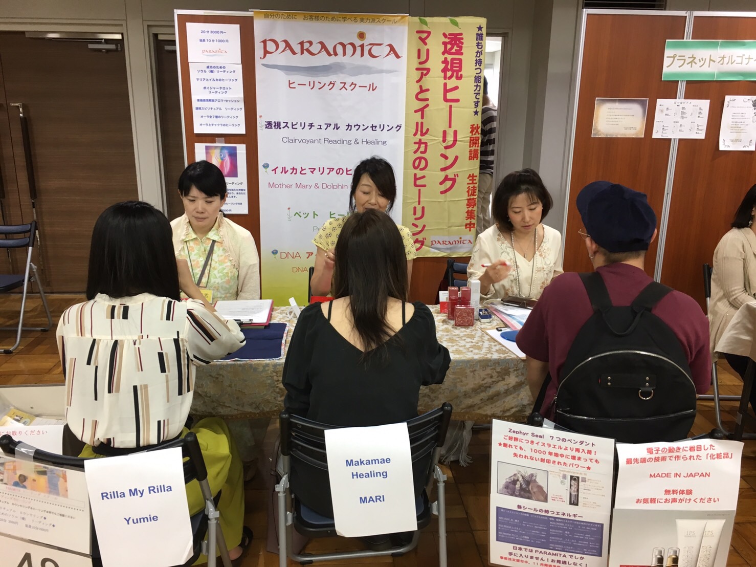 今回は、Rilla My RillaのYumieさんとMARIさんと出てきました。周りにもPARAMITA認定ヒーラーが出店していたので、仲間で集まってる感じでした。