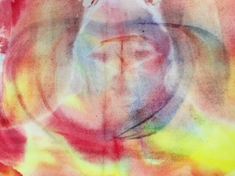 栗原さんとのワークショップ。「灯(ともしび)の狭間から 〜水彩画でハートを癒す〜」。自分と繋がる、解放する、自分や他者を信頼する、ということをシュタイナー教育で実践されている滲み絵や、遊びや、スーフィーの詩人ルーミーの詩やインド舞踊を混ぜて私たちなりにアレンジして提供しました。