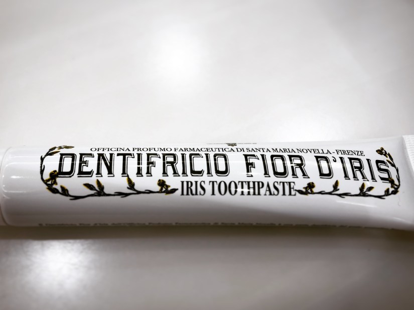さて、こちらは、大好きな、フィレンツェに本店のあるサンタ マリア ノッベラの歯磨き粉。ユリの根入り。昔から、歯茎に良いことで知られるユリの根っこが今も使われてます。