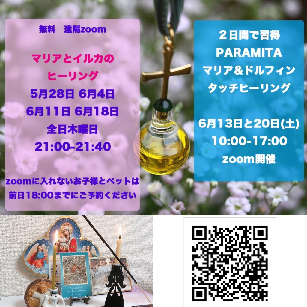 話は変わりますが、昨日も、マリア&ドルフィンタッチ ヒーリングのzoom無料セッションに多くの方にご参加いただきました。通信障害があり、20名以上の方がzoomに入れないというハプニングがありましたが、来週もマリドル認定ヒーラー全員でしっかりセッションさせていただきます。詳細は公式LINEアカウントから