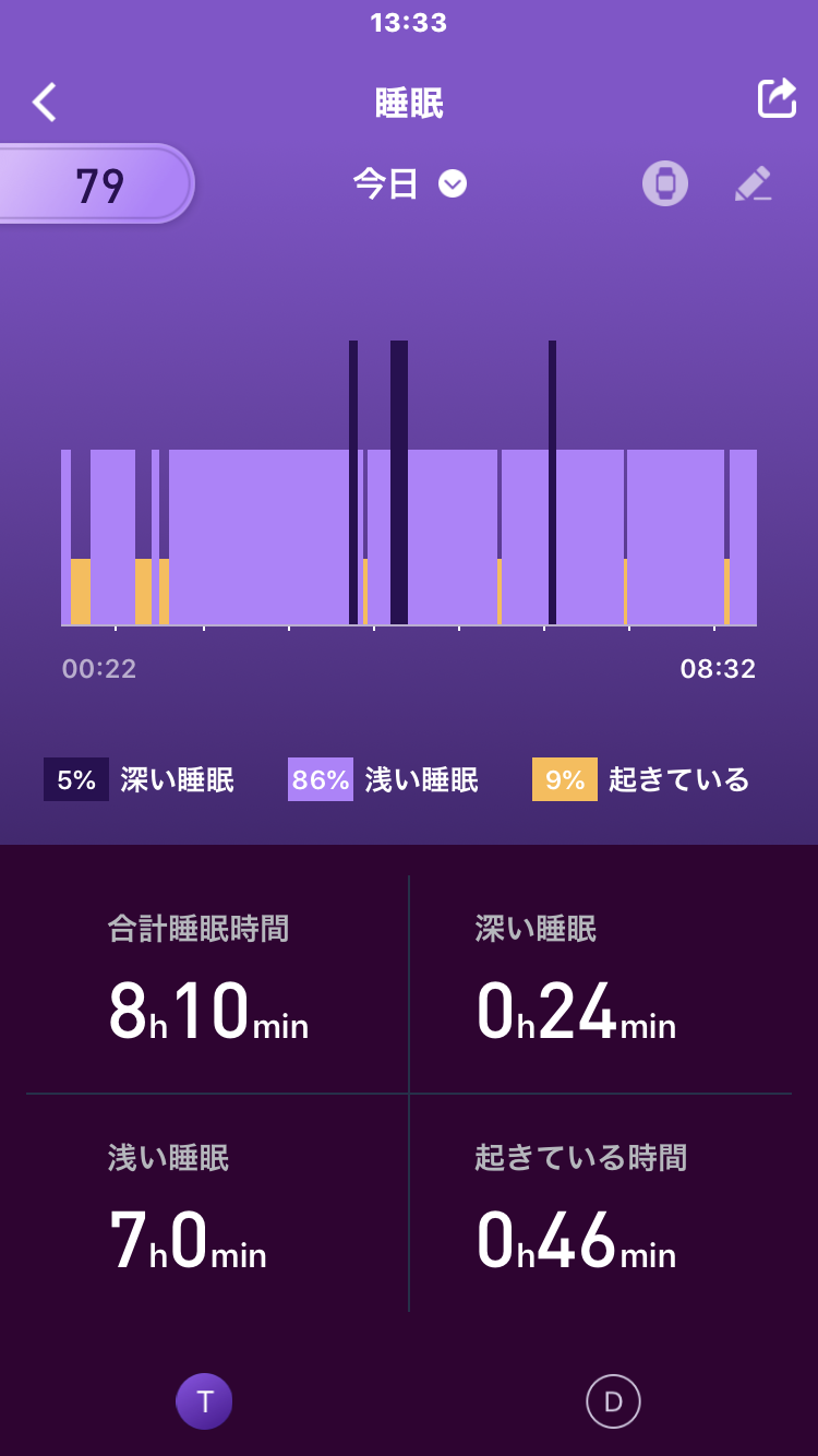 で、毎朝やる睡眠の質チェックなんですが、幸せマーク一杯。夢を沢山みたせいか、深い睡眠が殆ど取れていない。それなのに、気分爽快‼️