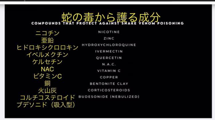 ではでは、皆さま、ご覧になってください。動画の中で言われているレムデシビルは日本では名前を変えて投与されています(ベクルリー点滴静注液)。とことん酷い。日本は本当に世界の悪の巣窟です。ご注意ください。そして、動画の最後にある毒の効果を抑えるもののリストが字幕翻訳されていなかったので、訳してあります。火山灰というのは、ベントナイトクレイです。