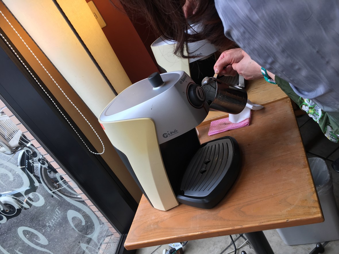 Tully’sで、エスプレッソ マシーンの使い方を学び、ラテアートしました。「あ、王子様に見えますね」って横の参加者に言われました 王子様は甘くてフワフワでしたよ (^^)