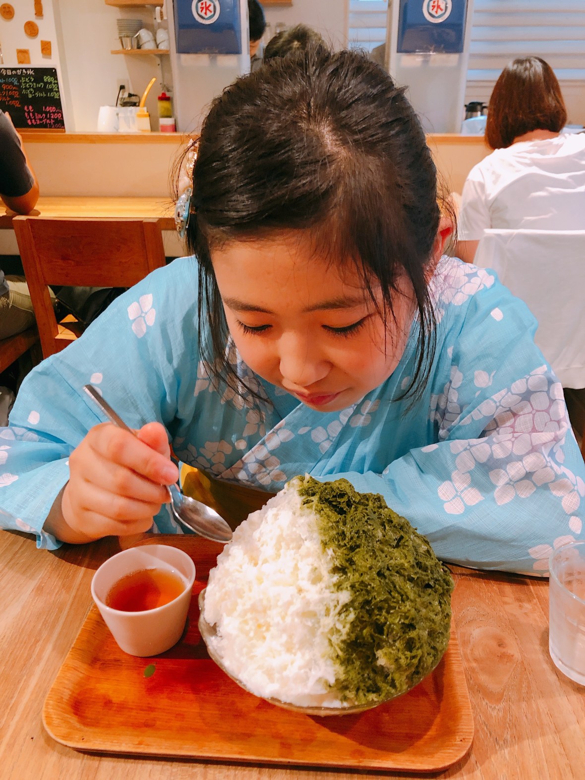 昨日は夏休み最後の日を娘と浴衣で過ごしました。カキ氷ようやく食べれたね〜