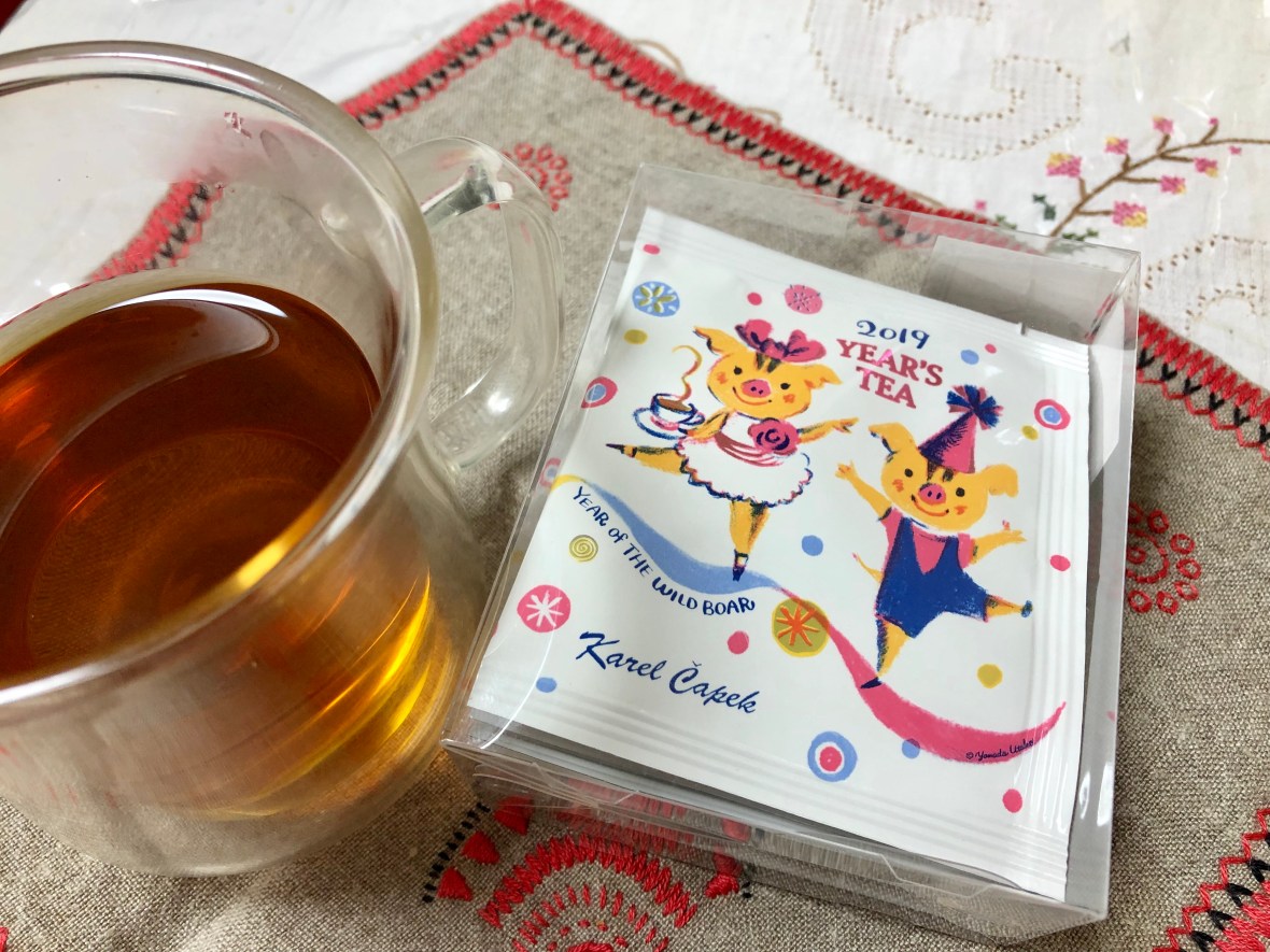 チェコ好きなら知っているであろうカレル チャペクの2019イヤーズ ティー。20年くらい前にチェコで買った刺繍を眺めながら朝の1杯。