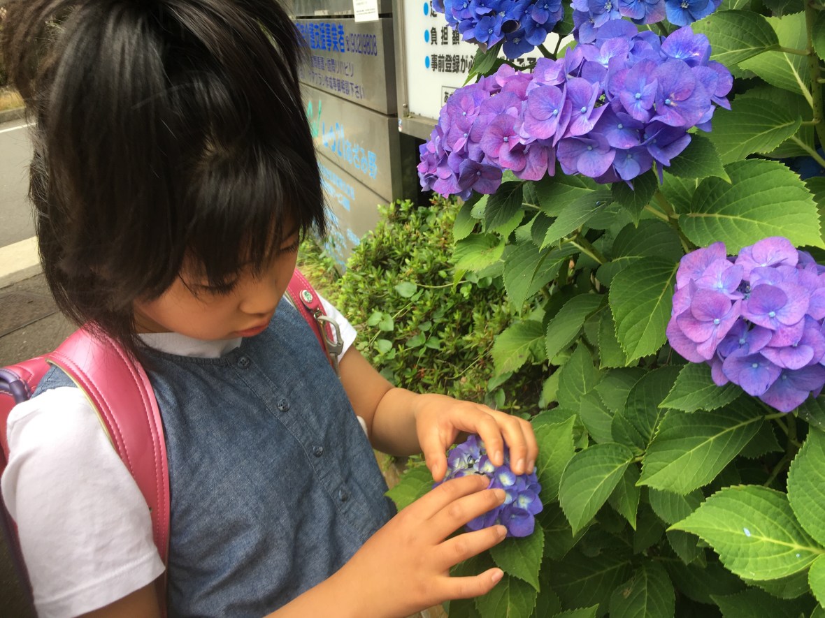 病院に行く途中で見つけたアジサイ。娘がアジサイの説明をしてくれました。成長してます!