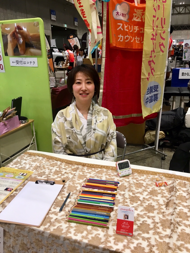 3日間ブースにいましたよ。冷静沈着なリーディングとヒーリングをされます。「あの冷静さは見習いたい」という他のヒーラーさんのお声をよく聞きます^^