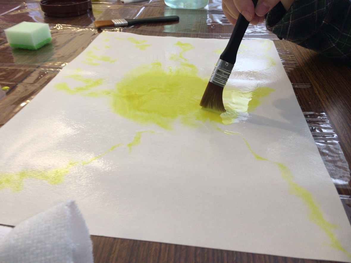 ワークショップでは、沢山の奇跡がありました。最高なのがこれ!描いたあと、乾かす時間とスペースがなかったので、栗原さんが新聞紙に挟んで、丸めておいてくださいました。後で開けてみたら大変身!