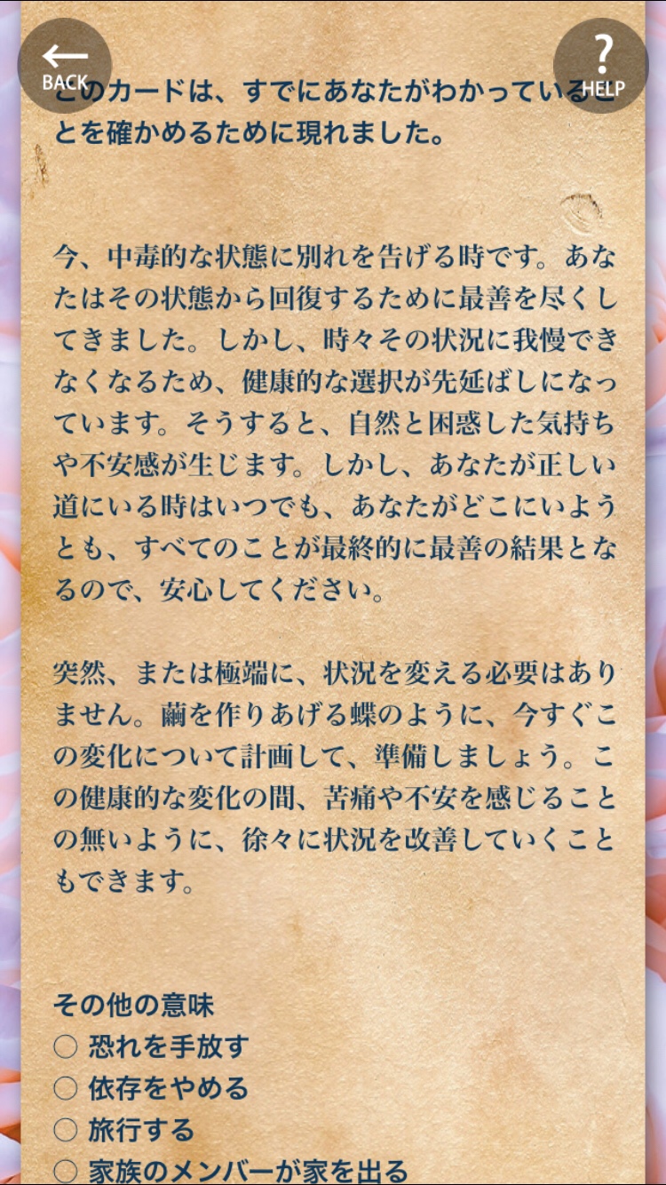 中毒的な状況から離れる時です。あなたを満足させるような果実を実らせることのない人間関係や環境には別れを告げましょう。健康に良くない化学物質はとらないようにしましょう。今週は、あなたの霊的な成長をブロックしているものを手放す週です。心の奥底で、あなたはそれが何なのかをわかっているはずです。