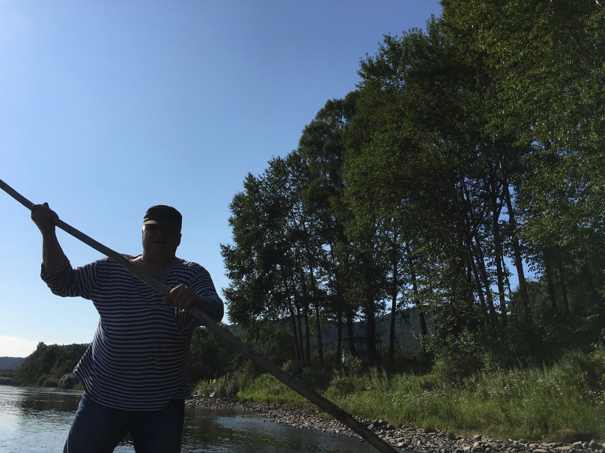 目の前に川があるので、好きな時に水浴びができます。が、水は夏でも冷たいW(`0`)W 10秒入るだけで足先がジンジンしてきますが、セルゲイおじさんはさすがはタイガの男。夕方に釣りをした後にそのままザブンと飛び込んで、シャシャッと髪をひとなで。