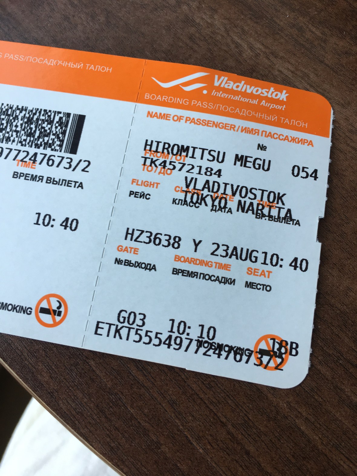 ウラジオストクから成田までのチケットの発行に手こずったのですが、それも合点が行きました。だって、発行時間が10:10だもん!