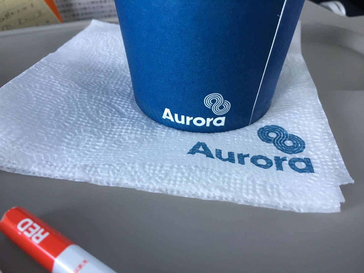Aurora airの機内のカップにも8の字。