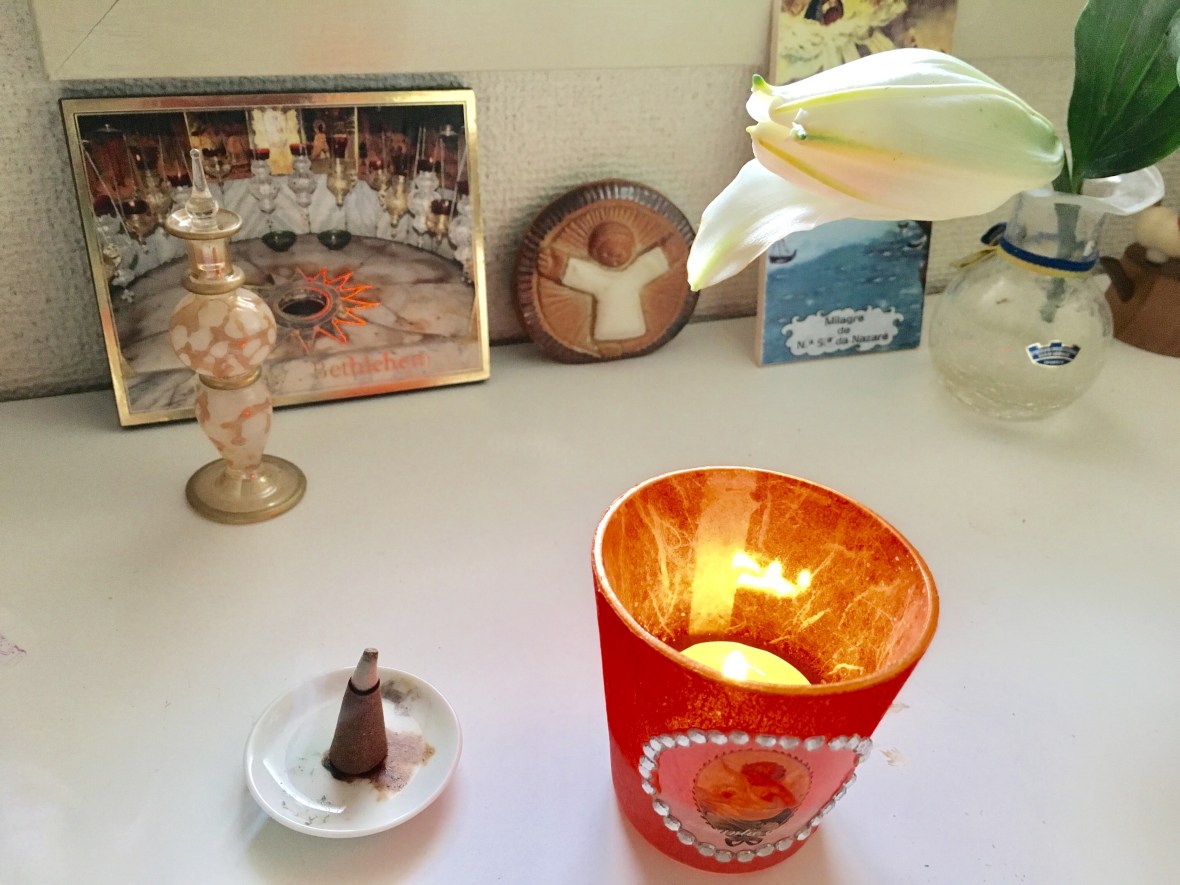 私も昨日、今日と大掃除して、お香を焚いてみました。マリアのシンボルである白百合を添えて。