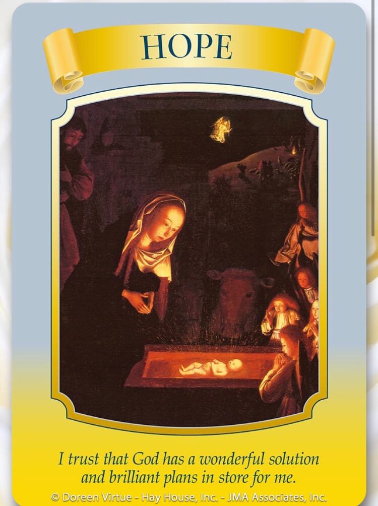 女性のカードが飛び出てきました。そして、希望のカードは、昨日から私の頭の中に何度も浮かんでくるものです。もしも今気分が落ち込んでいたり、特定のことが頭から離れずにあなたを心配にさせているようであれば、聖母マリアに、その心配を預けましょう。「マリア、この問題は私には重荷です。解決策を見つけるのを助けを求めてください。あなたの助けが必要です」。はっきりと、助けが必要であることを示してください。